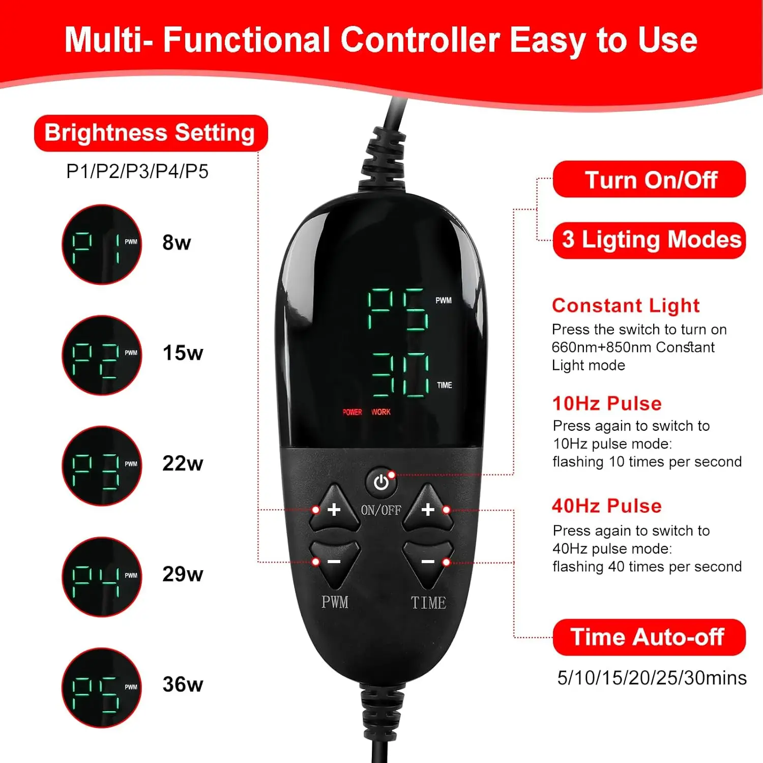 Flexible & easy to use: The red light therapy belt sits comfortably on the body while sitting, lying down, or walking around. The large light therapy mat allows your hands to be free. The infrared therapy pad with remote control conveniently plugs into the USB port on your power bank, computer, laptop or a charging adapter into a wall outlet. Please note: use the red light therapy device no more than 30 minutes at a time, you can enable the timer shutdown function.