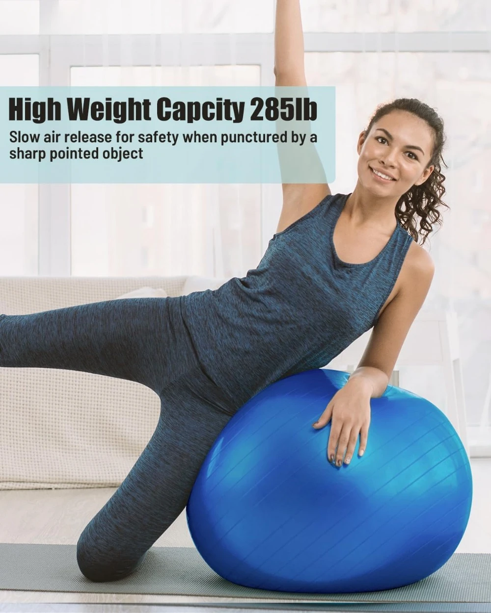 - 【Double Security】Supporting up to 285lbs, this yoga ball keeps you and your family safe by deflating slowly when punctured. The concentric circle pattern helps distribute your weight evenly, resulting in a much higher weight capacity.